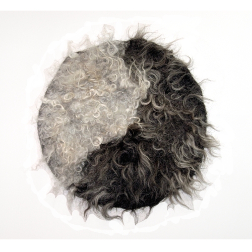 Zweifarbig gefilztes Sitzkissen/Bodensitzkissen.