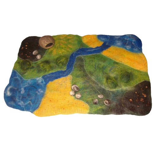 Eine Spiellandschaft mit Höhle und Filzsteinen.