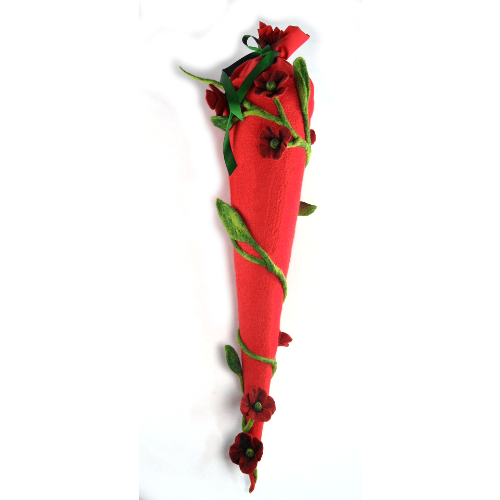 Gefilzte Zuckertüte mit Mohnblumenranke